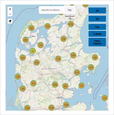 Vi har gjort det muligt, at tjekke dækningskort for de 3 mobilnet i Danmark på en og samme side, så du slipper for at surfe rundt.